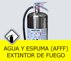 Agua y espuma AFFF Agua y espuma (AFFF): los extintores de agua con AFFF bajo presión sirven para proteger áreas que tienen riesgo de fuego clase A (combustibles sólidos), clase B (combustibles líquidos). |